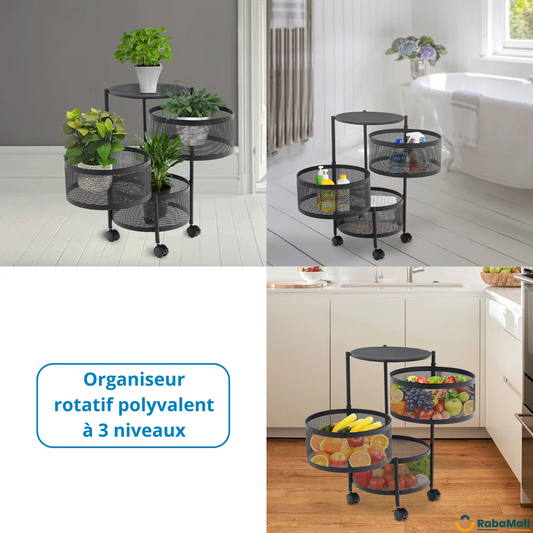 Étagère rotative multifonctionnelle à 3 niveaux