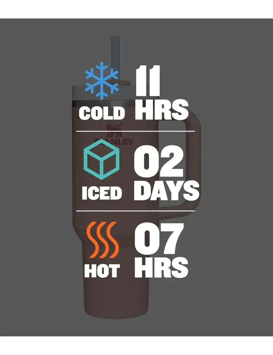 Le gobelet de 1 200 ml Stanley Quencher H2.0 est conçu en acier inoxydable recyclé pour un choix durable. Son couvercle FlowState™ offre trois positions rotatives : pour la paille anti-éclaboussures, une ouverture pour boire, et un couvercle intégral. Grâce à son isolation sous vide, vos boissons restent froides jusqu'à 11 heures (48 heures pour les boissons glacées). La poignée ergonomique et sa base étroite s'adaptent à la plupart des porte-gobelets de voiture.
