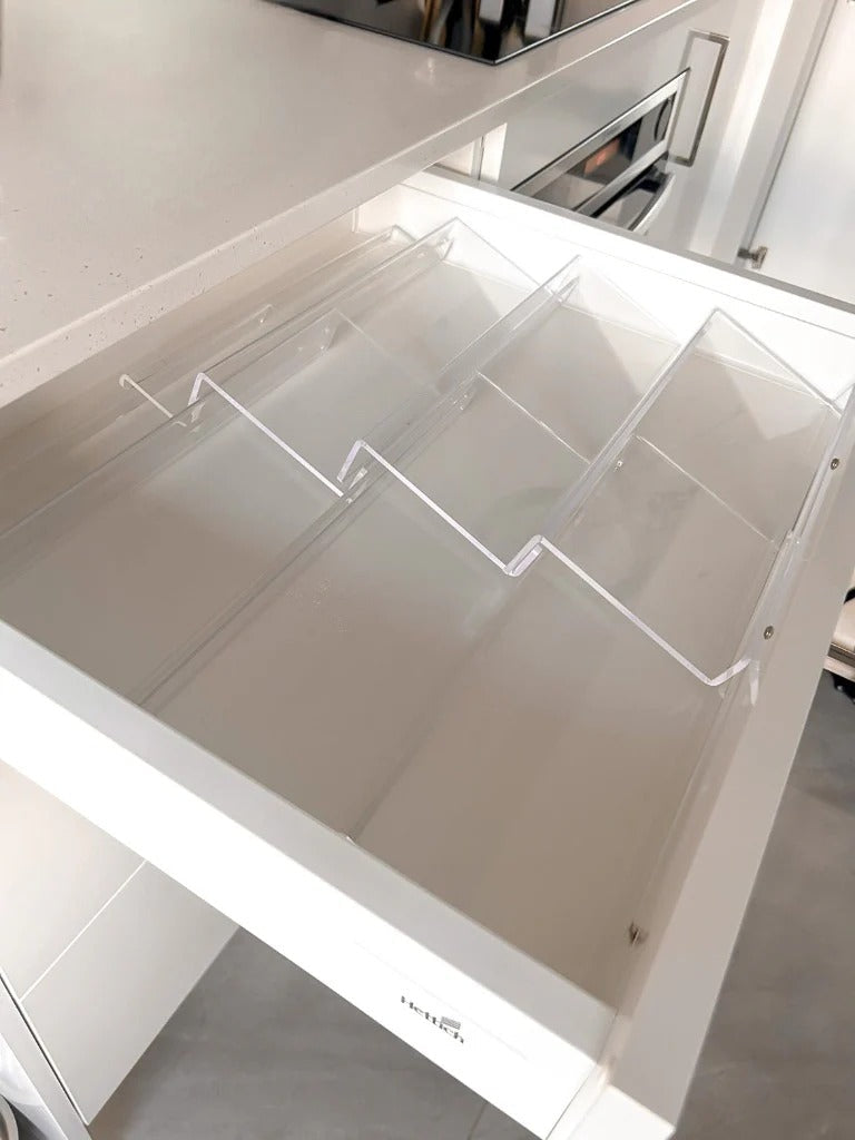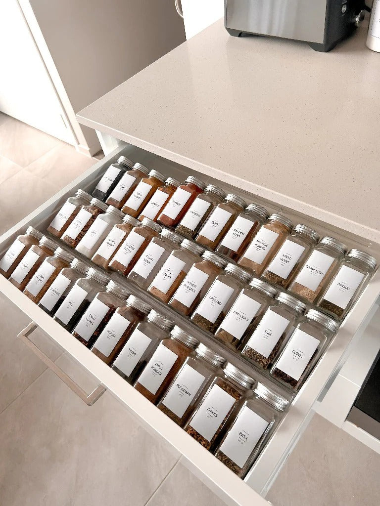 Vous avez un problème d'espace quotidien dans votre cuisine ? Les inserts pour tiroir à épices en acrylique transparent sont parfaits pour créer un tiroir à épices fonctionnel et peu encombrant. Associez-les à nos pots à épices carrés pour un résultat parfait.