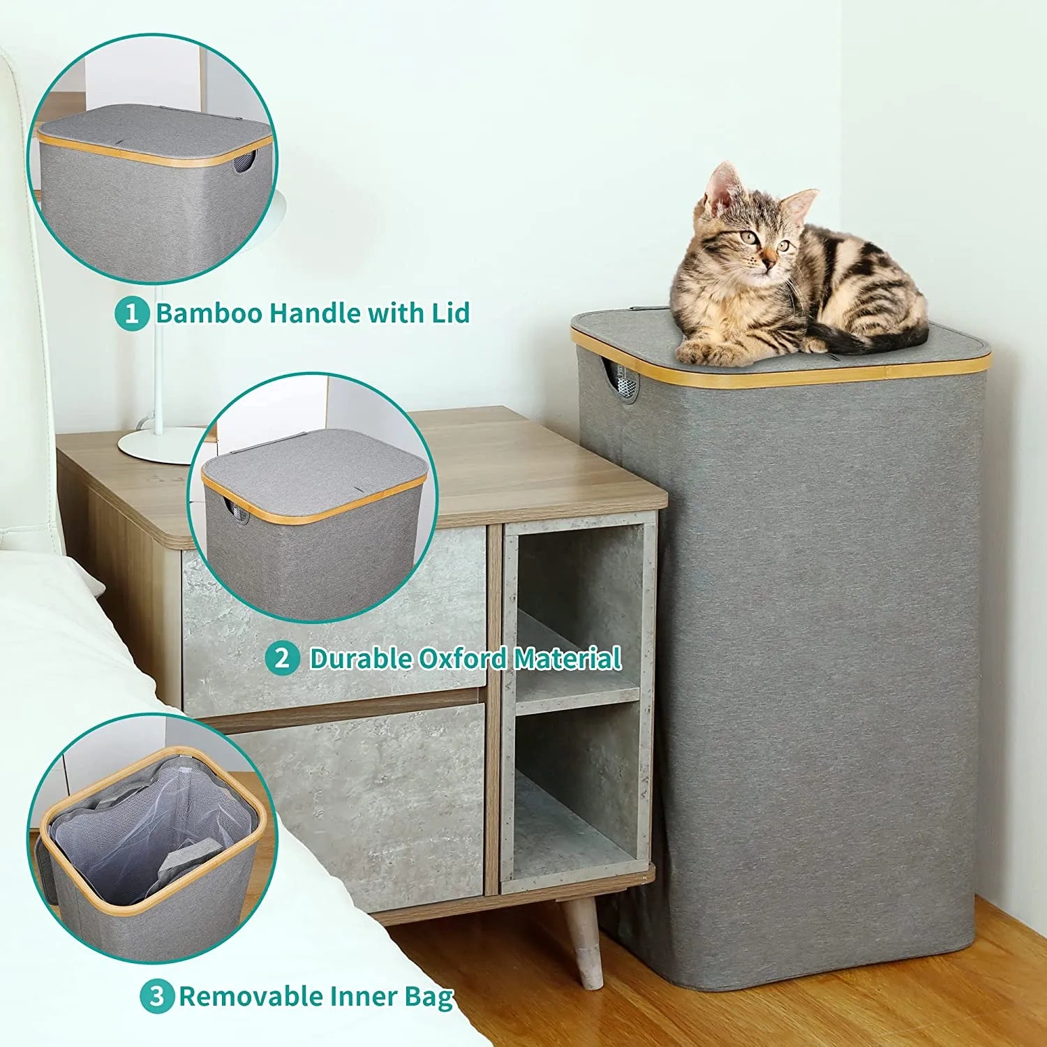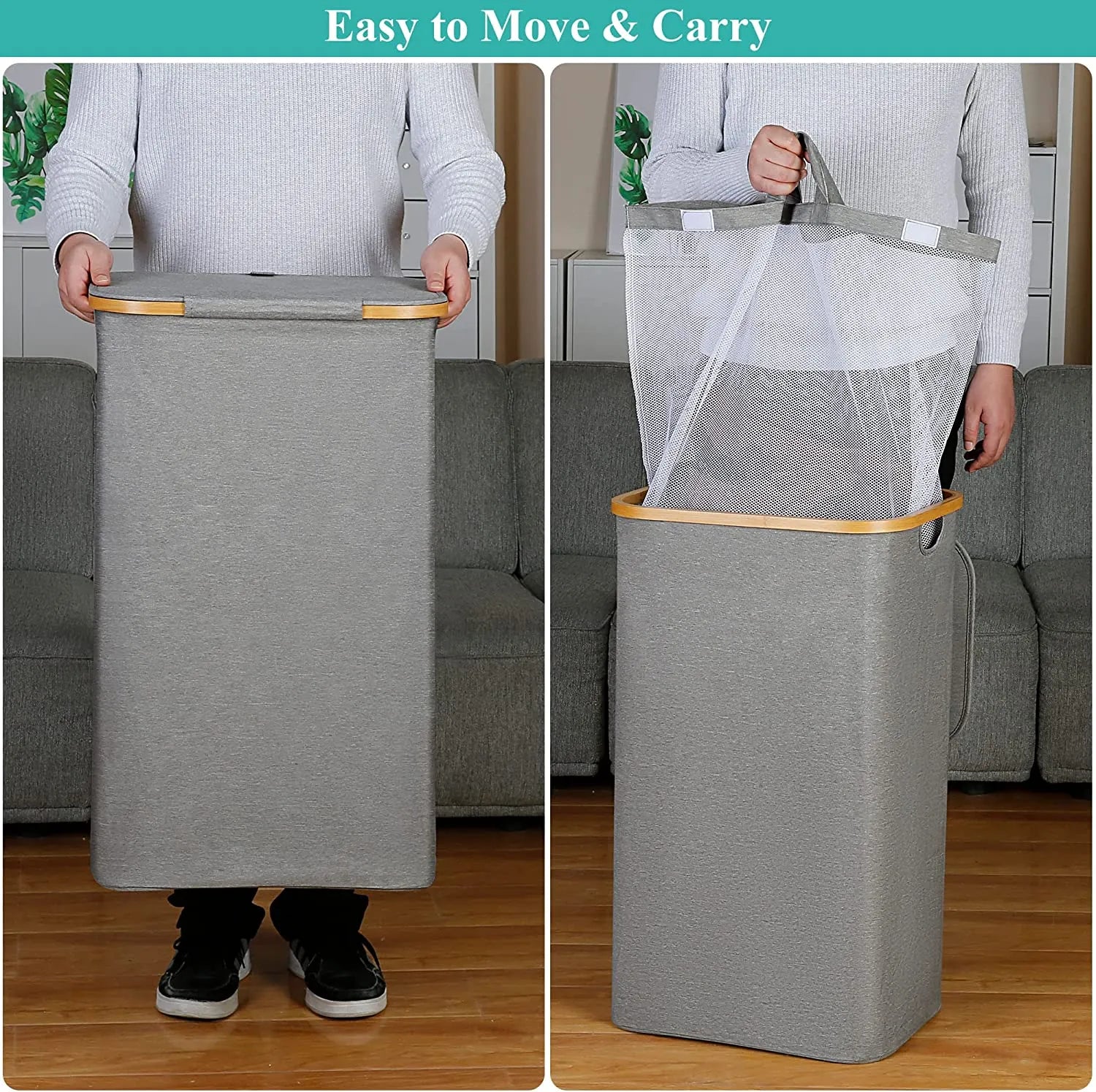 - Le panier à linge de grande capacité de 110L peut être utilisé en même temps que des vêtements, des serviettes, des jouets, etc. avec des sacs intérieurs amovibles, pas besoin de déplacer tout le panier à linge lors du lavage des vêtements, et il est facile à nettoyer.